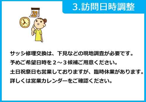 サッシ修理やサッシ交換を行う業者は意外にも少ないです。その理由として「故障原因の特定や部品の調達がとても複雑」、「手間がかかる」などが挙げられます。 部品の照会や特定には想像以上に時間がかかることがありますので、予めご了承ください。
