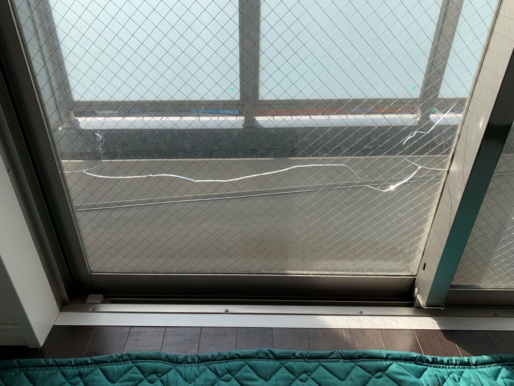 網入りガラスは自然現象としてよく割れますね。