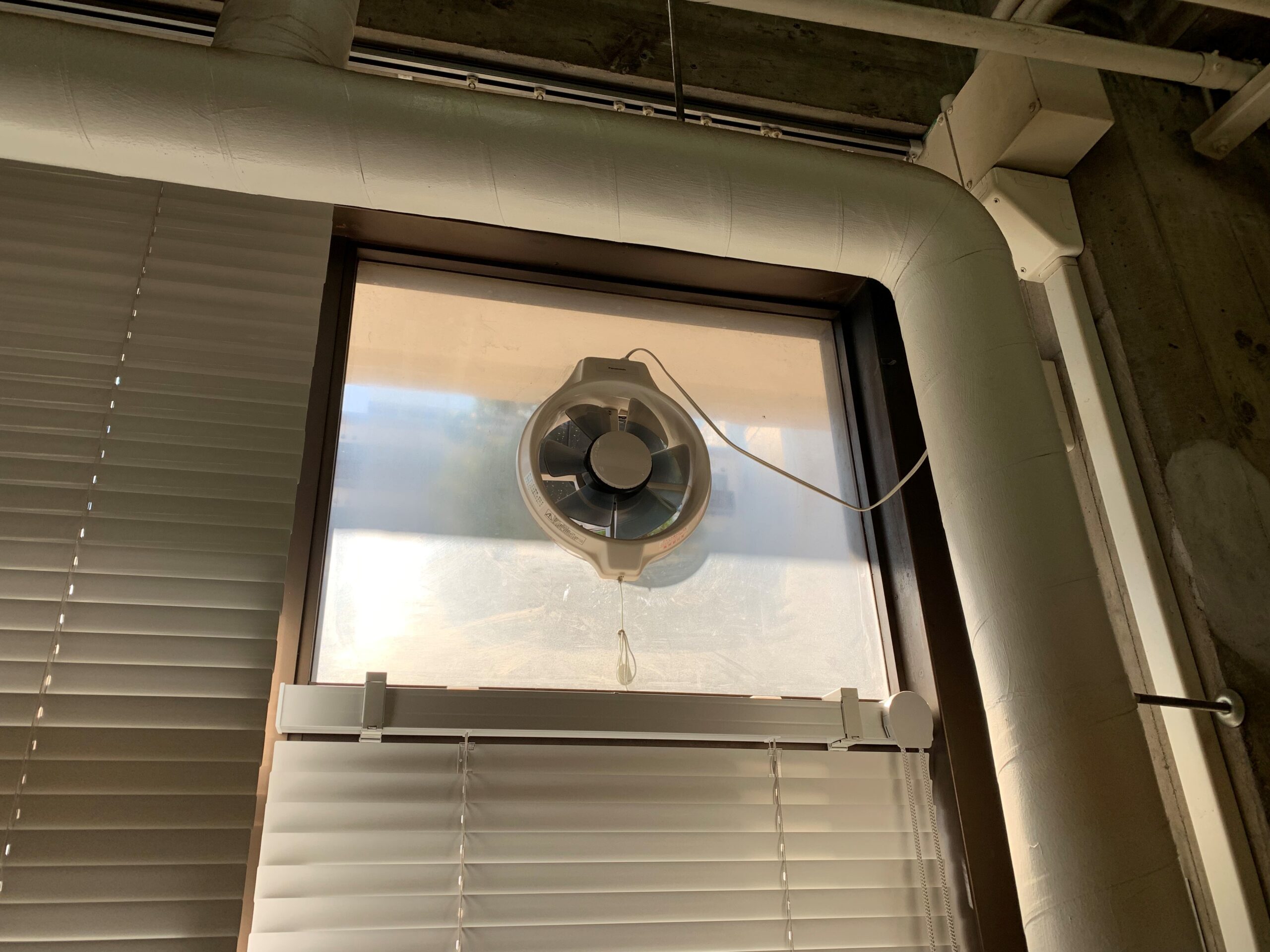 もともとアクリル板に換気扇が取り付けられていましたが、肝心の換気扇が壊れていたので交換ためです。