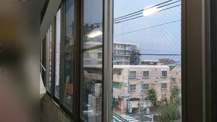 網入りガラスだったので、本来なら外貼りするところですが、耐光性の懸念から内貼り用を強く希望されたので、熱割れ保障なしで室内側より貼りました。