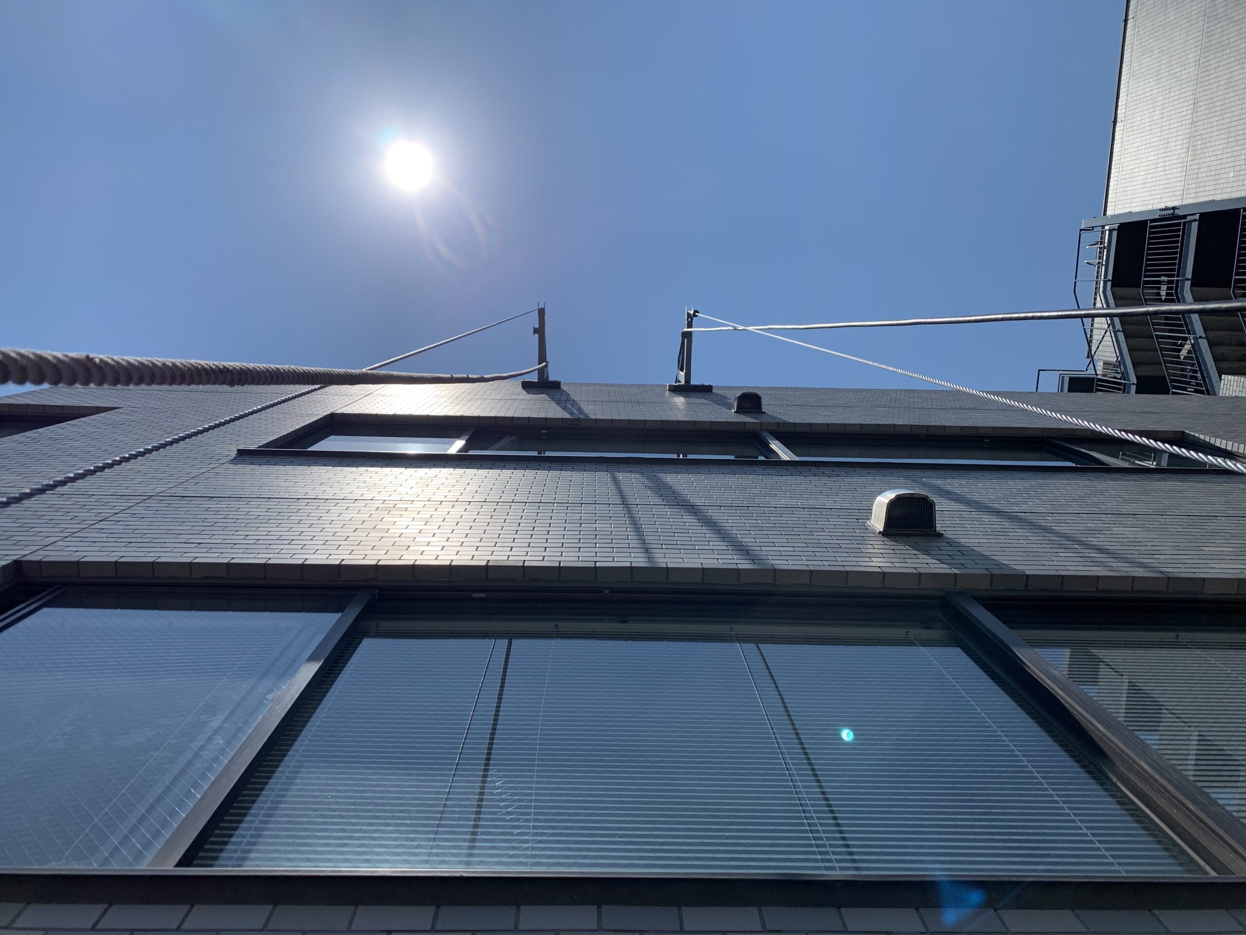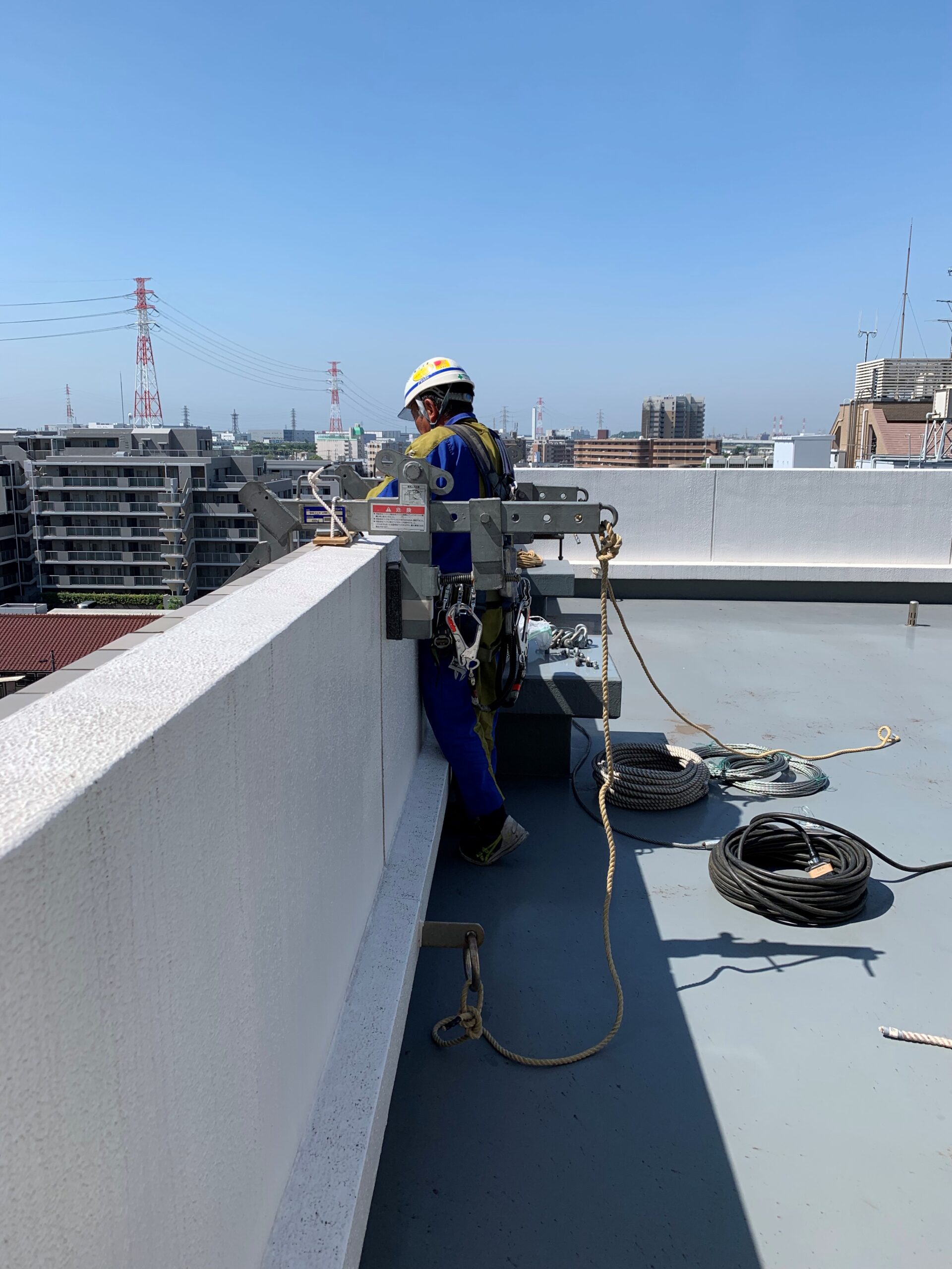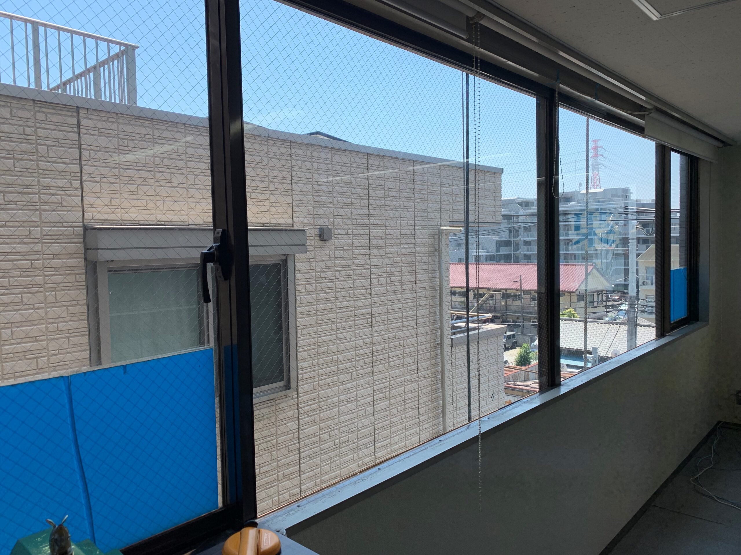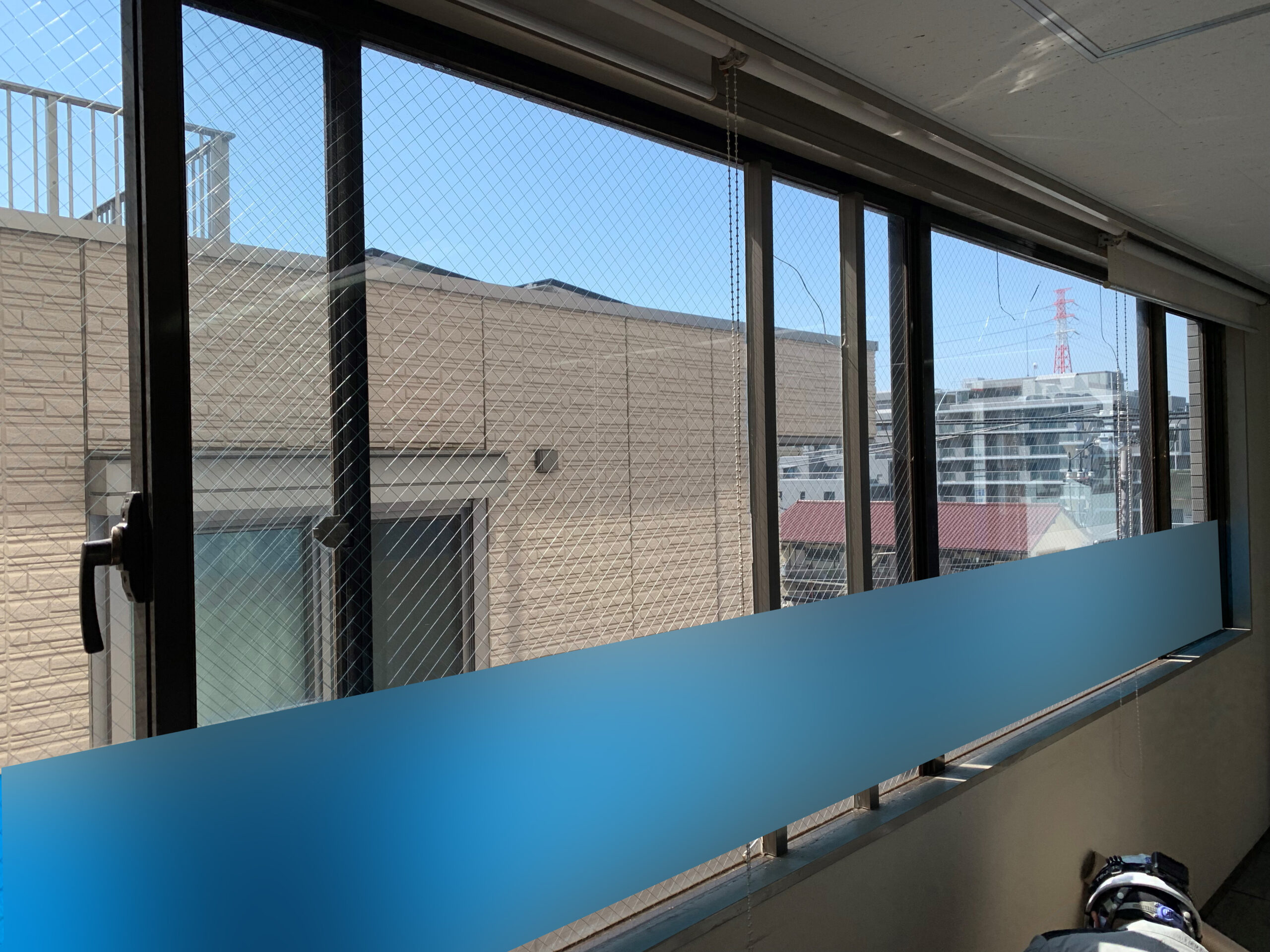今回はビルの5Fなので恐怖感はありませんでしたが、過去に43階を施工したときはさすがに緊張しました(汗)