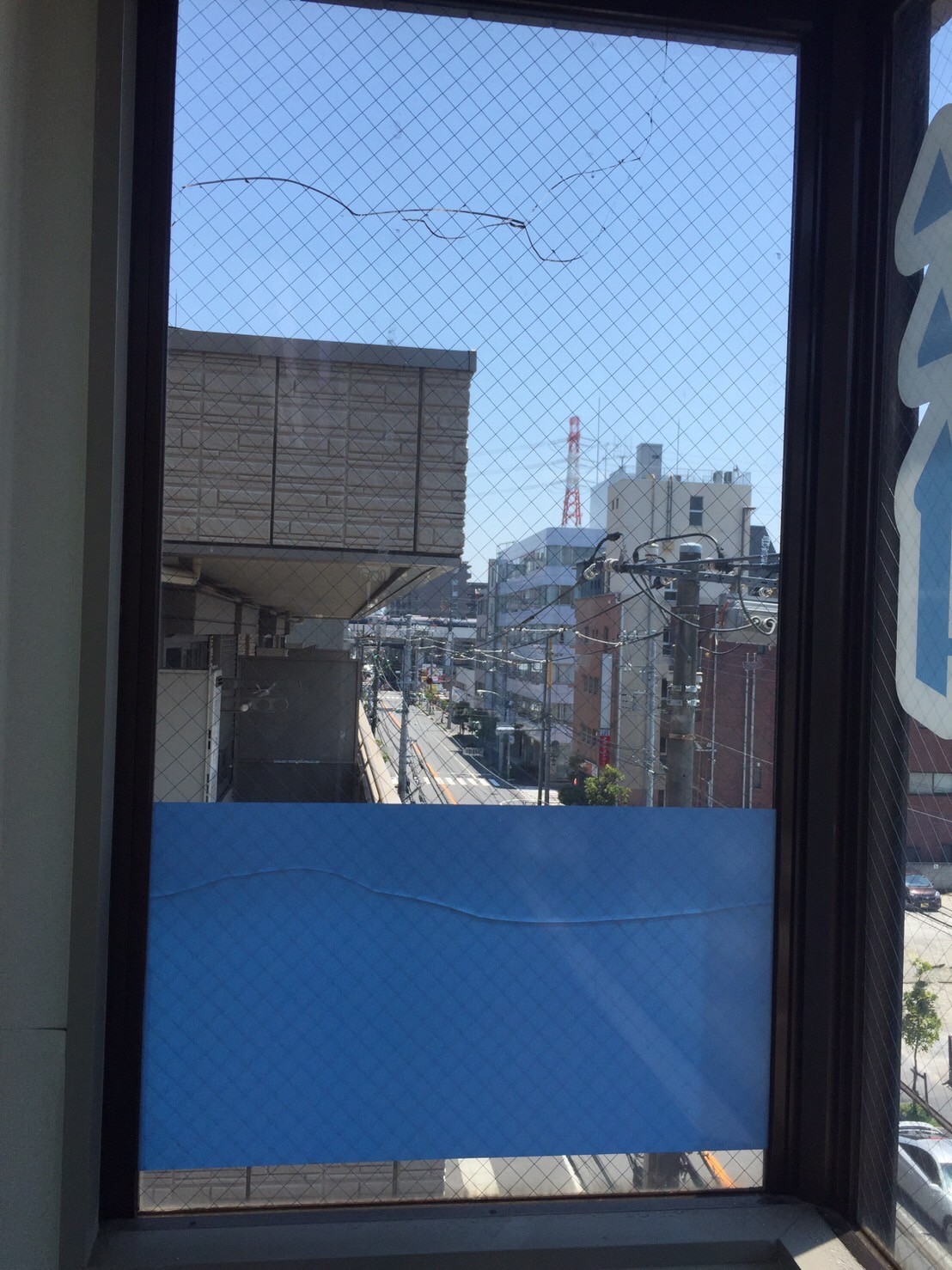 極力、網入りガラスには、看板シート等は貼らない方が良いですね。