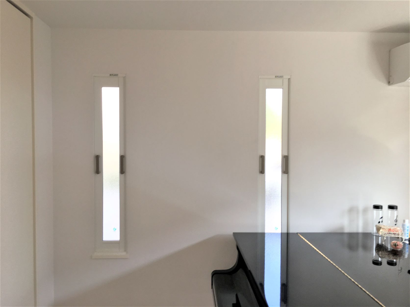取付した窓はグランドピアノが置かれた戸建ての洋室。