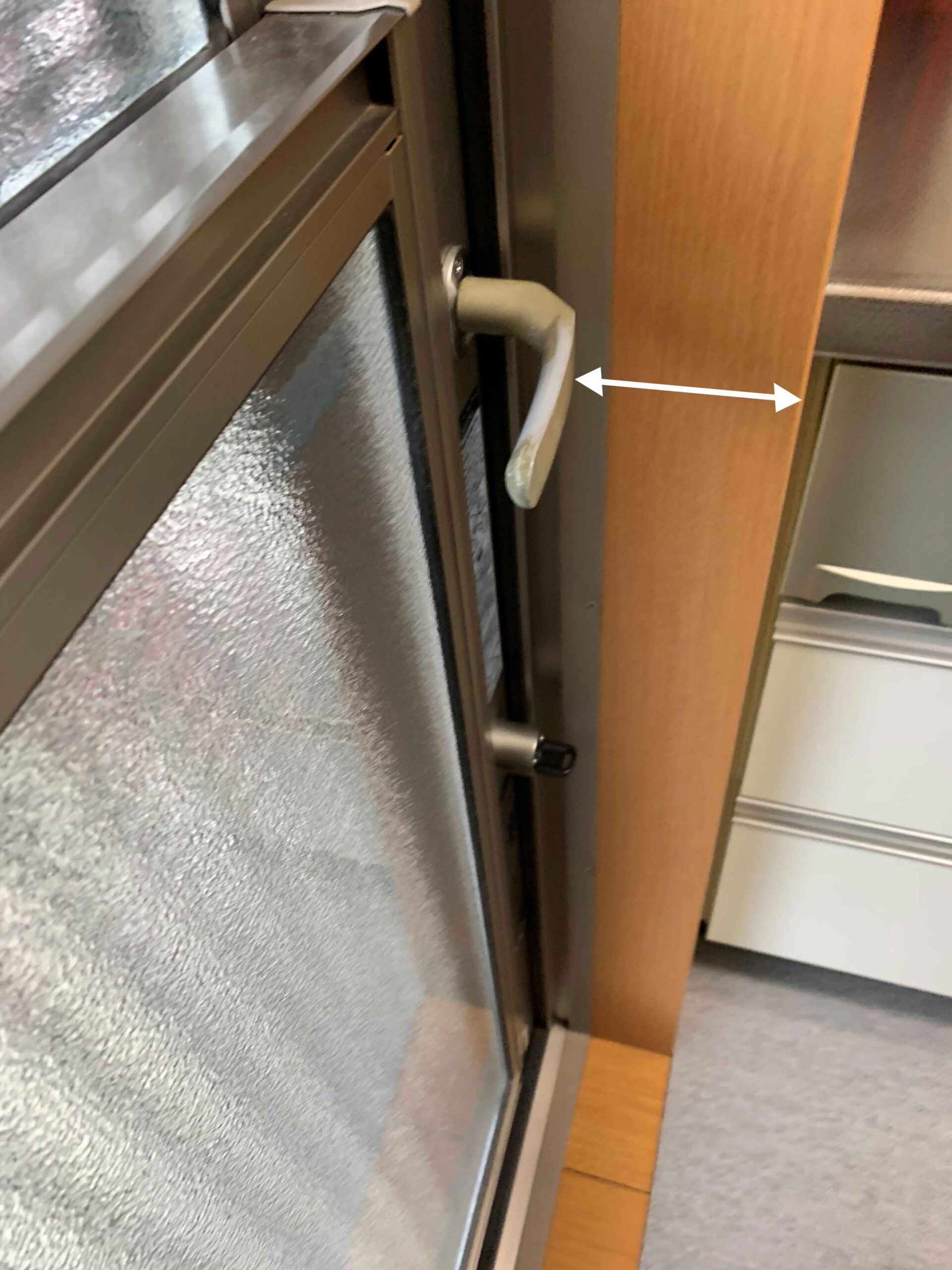 ドアクローザー、ドアハンドル箇所のスペースを計測してください。
