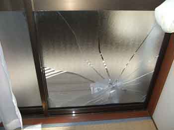 かなり鋭利に割れているので、ガラス片の撤去も注意を払わないと危ない状況です。